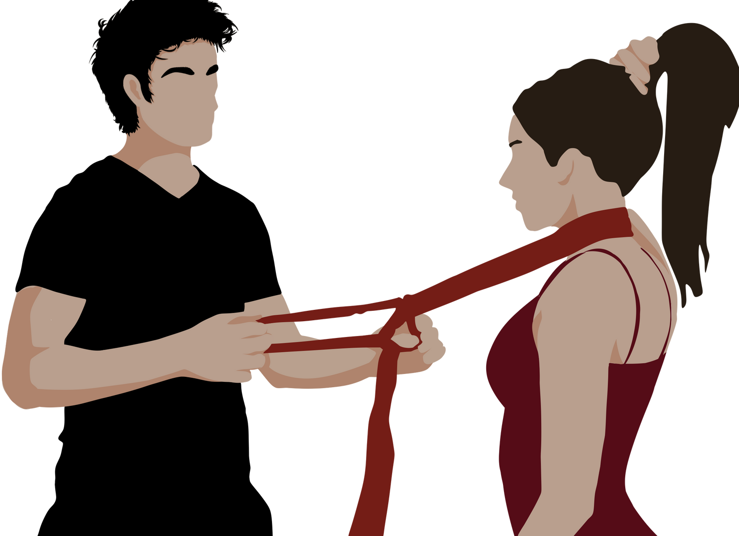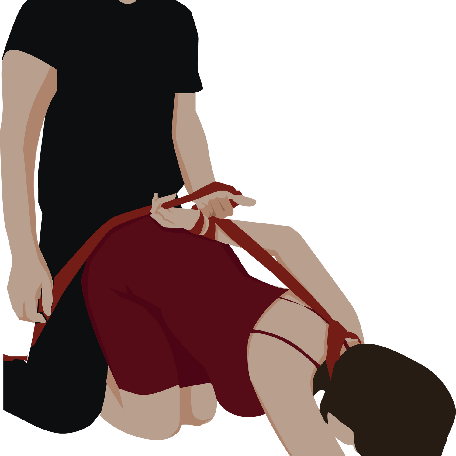 One person leads, one person follows - use the restraint as a leash to guide your partner.